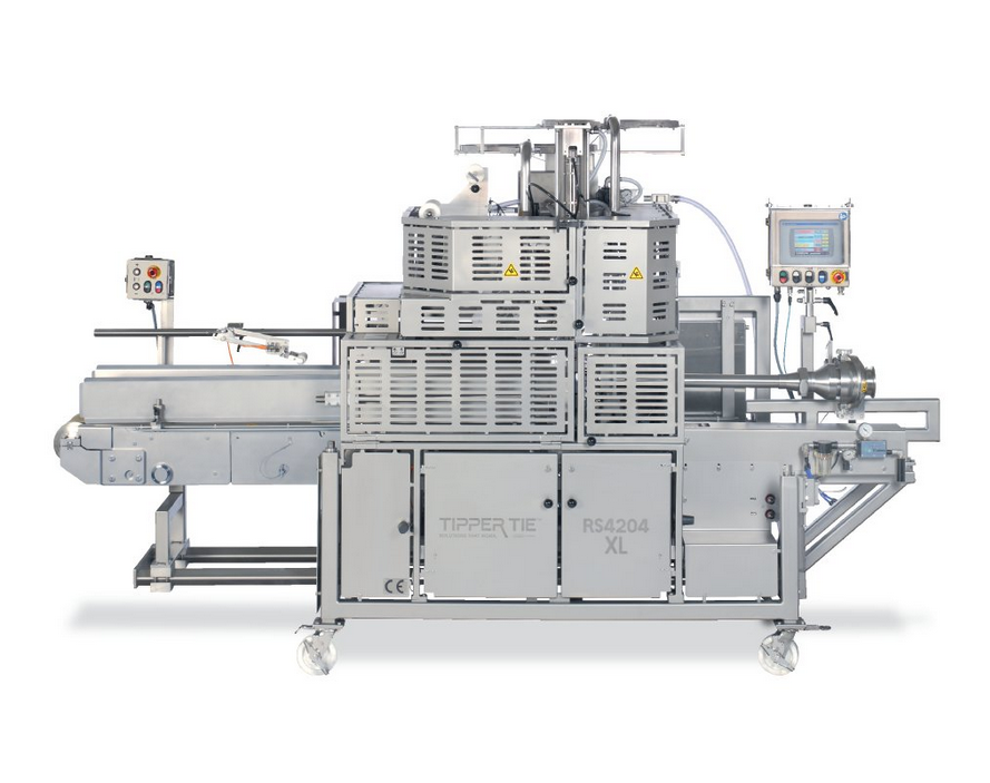 RS4204CM (Collagen Module). Some producers would like their product to have a unique or hand-crafted appearance. This can be accomplished with an attractive pattern on the product’s surface. For this application, TIPPER TIE offers the RS4204CM. This configuration automatically applies collagen film and elastic netting to pumpable pork and poultry products.