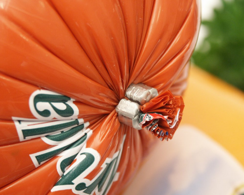In addition to gathering packaging material, the clip must keep the package securely closed under a variety of extreme conditions. For meat products, it must endure high heat from the cooking and smoking processes. For vacuum packed products, the clip keeps the package airtight through its entire shelf life. For netted products, the clip carries heavy loads as it supports large hams through the smokehouse and bulky frozen turkeys through the freezer case until the products reach the consumer’s kitchen.
